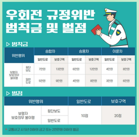 만약 차량이 과속하거나 보행자를 무리하게 앞지르거나 보행자가 빨리 가지 않는다고 경적을 과하게 울리면 범칙금이 부과될 수 있으니 주의 하셔야 합니다.