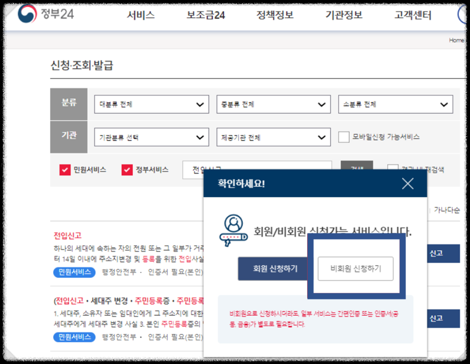 두번째로 인터넷 정부 24에서 온라인 전입신고하는 방법에 대하여 순서대로 알아보도록 하겠습니다.