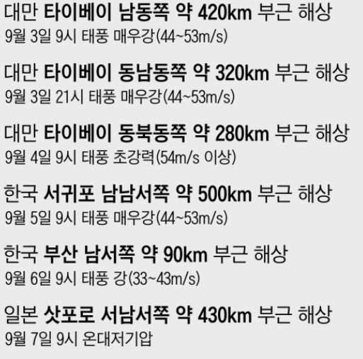 저번글에서는 예상경로와 예측을 중점으로 알려드렸습니다. 오늘은 거의 확실시하게 예보되고 있는 상황을 알려드리겠습니다.