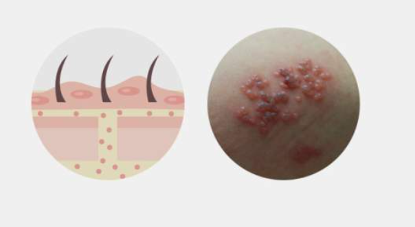 대상포진 초기증상 중 가장 대표적인 증상입니다. 피부에 작은 수포가 먼전 생깁니다, 처음에는 조그만 수포 형성에서 시작되다가 시간이 지나면 수포가 띠를 형성해서 크게 번지기도 쉽습니다. 그리고 붉은 반점도 생깁니다.