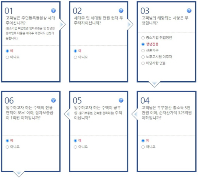 해당 사이트를 들어가면 주택전세자금 계산하기가 있습니다. 이를 통해 시뮬레이션을 먼저 해보는 것도 좋습니다. 어떤 부분들을 확인하는지 신청자격을 확인해보겠습니다.