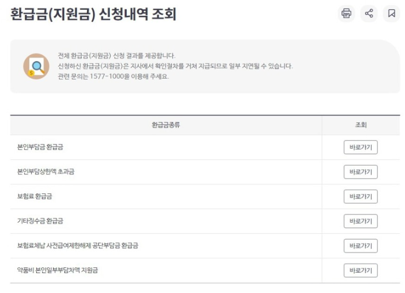 국민건강보험 사이트에 접속하여 환급금조회/신청을 클릭하면서 본인인증 창이 나오면 이를 진행하면되는데 완료되면 다시 처음 화면이 나오니 환급금조회/신청을 다시한번 눌러주시면 됩니다.