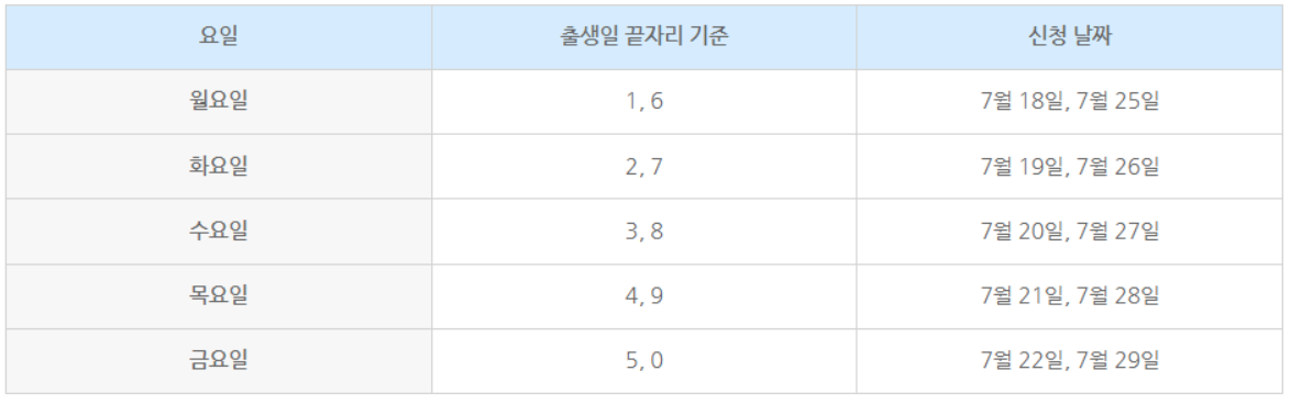 청년 내일 저축계좌 신청·접수 기간은 7월 18일 ~ 8월 5일까지(주말 제외)입니다. 신청 첫 2주간(7. 18. ~ 7. 29.)은 원활한 신청을 위해 출생일 끝자리를 기준으로 5부제가 시행됩니다. 5부제 신청 기간에 신청을 하지 못한 분은 3주 차(8. 1. ~ 8. 5.)인 추가 신청 기간에 출생일 끝자리와 관계없이 신청하실 수 있습니다.