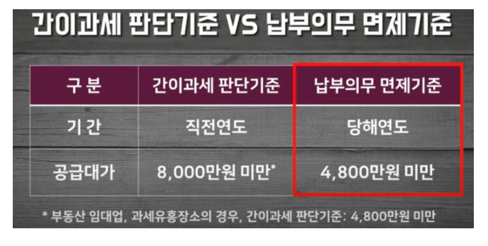단, 부동산 임대업이나 과세 유흥장소 사업자는 공급대가 기준이 4,800만 원입니다.