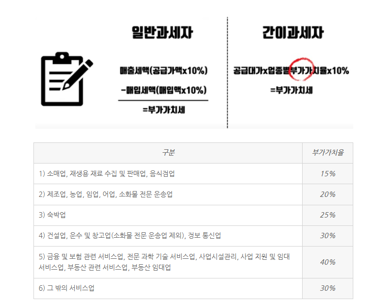 간이과세자와 일반과세자의 차이점은 바로 부가세입니다.