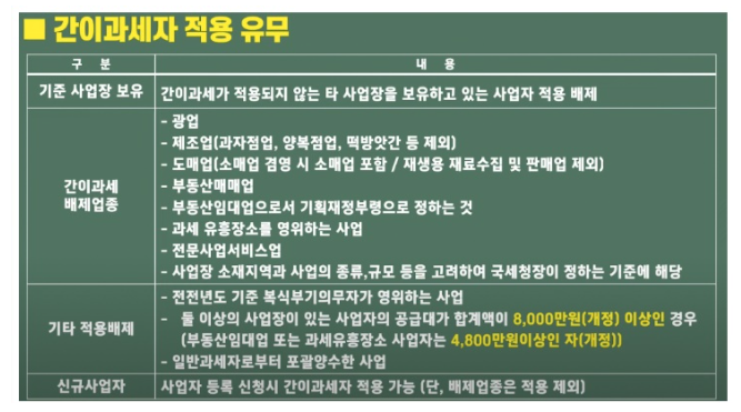 간이과세자는 적용되지 않는 배재 업종이 존재합니다.