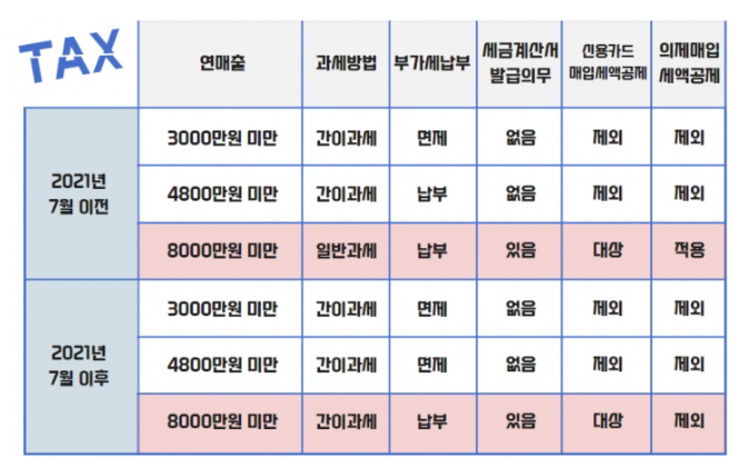 - 간이과세자 기준 및 장단점