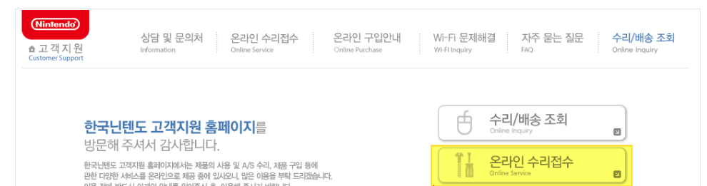 2. 화면의 온라인 수리 접수 버튼을 클릭합니다.