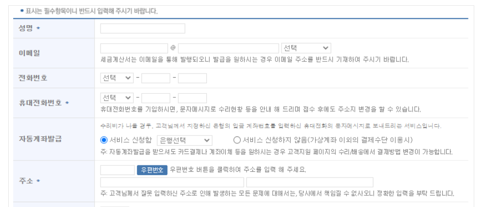 (주의사항) 택배 발송 시 수리의뢰번호를 기입해야 합니다. 안 그러면 어떤 수리 건인 이 센터에서 알 수가 없습니다.