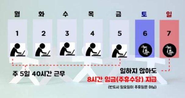 회사를 다니는 모든 사람들에게 도입한 제도로 흔히 얘기해서 개근을 한 경우에 주는 급여라고 생각하시면 됩니다. 회사를 최초에 들어갈때 주5일 근무를 하기로 약속을 하였고 실제로 아무 문제없이 주 5일을 다 일하셨다면 회사에서는 추가적으로 하루치 급여를 더 지급해야 합니다.