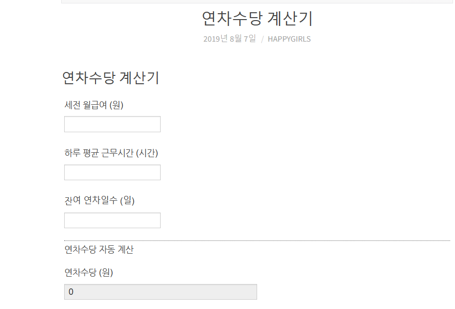 하지만 예시처럼 금액처럼 딱 맞아 떨어지는 통상임금은 없습니다. 그래서 계산하기에 조금은 어렵다고 느껴지실 수도 있어서 제가 연차수당 계산방법이 가능한 홈페이지를 알려드리겠습니다.