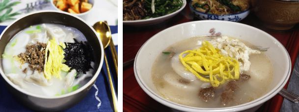 김가루등을 고명으로 얹어 먹으면 정말 맛있는 한 끼가 됩니다. 지역에 따라 만두를 빚어 떡국과 함께 끓여 먹기도 합니다.