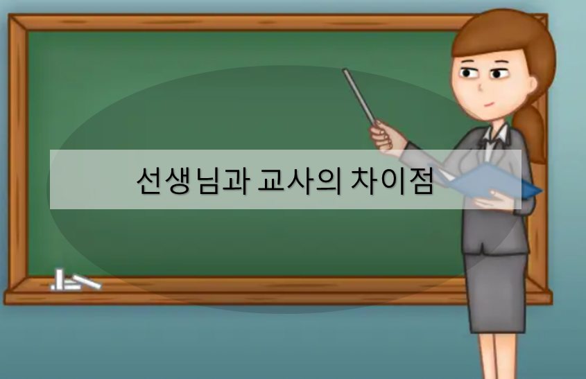 오늘은 선생님과 교사 차이에 대해 알아보도록 하겠습니다.