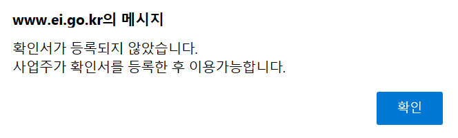 4. 사업주가 확인서를 제출하지 않았을때 뜨는 메세지