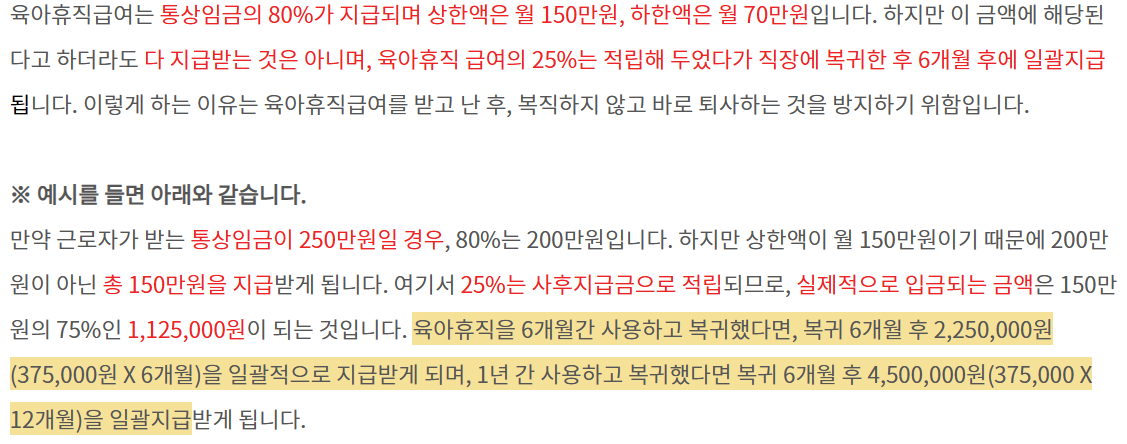 육아휴직 급여는 이는 근로자가 휴직을 하는 동안에도 일정 부분의 수입을 보장해주는 것을 목적으로 합니다. 휴직자에게