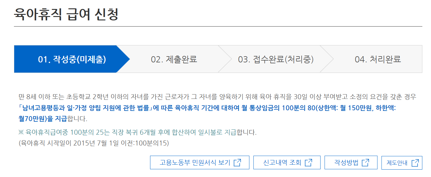 오늘은 육아휴직을 신청한 후 한달이 지나게 되면 육아 휴직 급여를 신청하게 됩니다. 신청하는 방법 절차에 대해 알아보도록 하겠습니다.