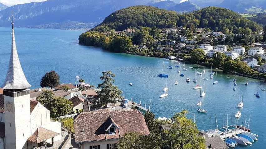 인터라켄은 스위스의 알프스 지역에서 인기 있는 관광지입니다. 아름다운 호수와 두 개의 알프스 산봉우리 사이에 위치해 있어 풍경이 환상적입니다. 정글라이드(Jungfrau) 등의 케이블카를 이용하여 알프스의 아름다운 풍경을 감상할 수 있습니다.