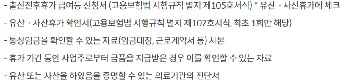 출산전후휴가(유산 또는 사산휴가)를 시작일 이후 1개월~종료일 이후 12개월 이내 신청