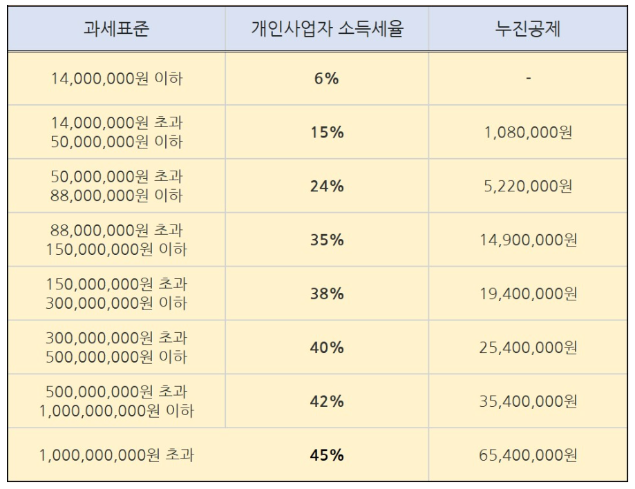 자영업자인 개인사업자는 개인이 전반적인 재무관리 재고관리등 전반전인 모든 업무를 수행합니다. 요즘 투잡하시는 분들도 많기 때문에 개인사업자로 준비해야하는 것들이 많습니다. 그중 제일 중요한 것중 하나인 어느 정도의 세금을 내야 하는지 소득세율 궁금하신 분들 많으실 겁니다. 지금부터 같이 알아보도록 하겠습니다.
