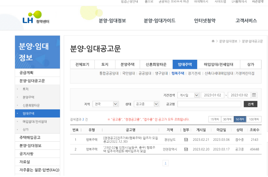 행복주택의 임대공고와 분양공고는 LH청약센터에서 확인하실 수 있습니다.
