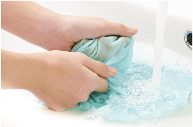 - 중성세제(주방 세제)를 얼룩 부위에 살짝 묻힌 후 손으로 조심스럽게 문질러줌.