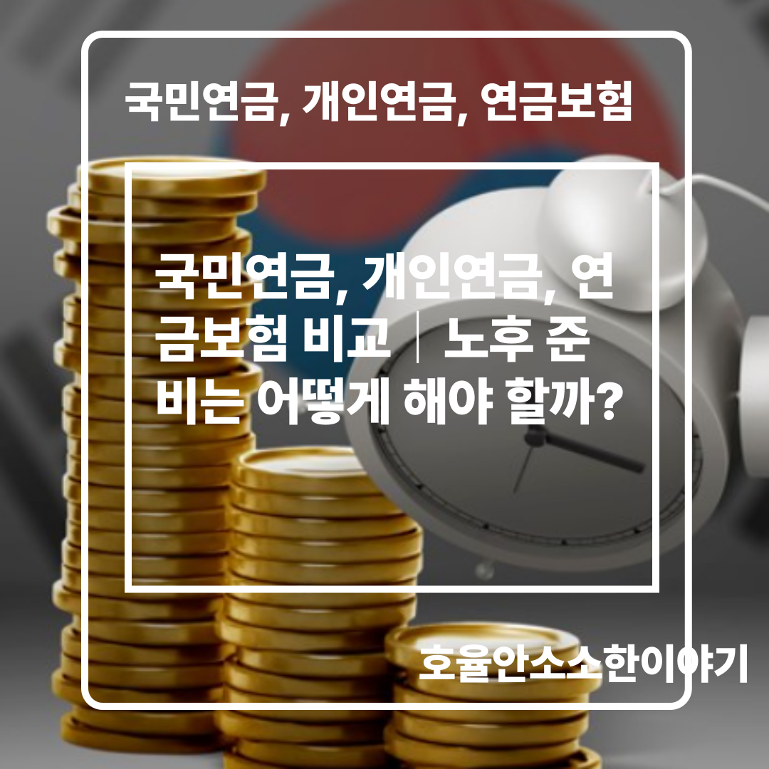 우리나라의 평균 수명이 점점 길어지면서, 은퇴 이후의 노후 자금 준비는 이제 선택이 아닌 필수가 되었습니다. 특히 100세 시대를 맞이한 지금, 국민연금만으로는 부족하다는 인식이 확산되면서 다양한 연금 제도에 대한 관심도 높아지고 있습니다. 이번 글에서는 국민연금, 개인연금, 연금보험의 개념과 차이점, 장단점, 그리고 실제 수령액 비교를 통해 어떤 연금 전략이 효율적인지 알아보겠습니다.